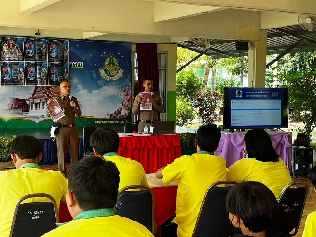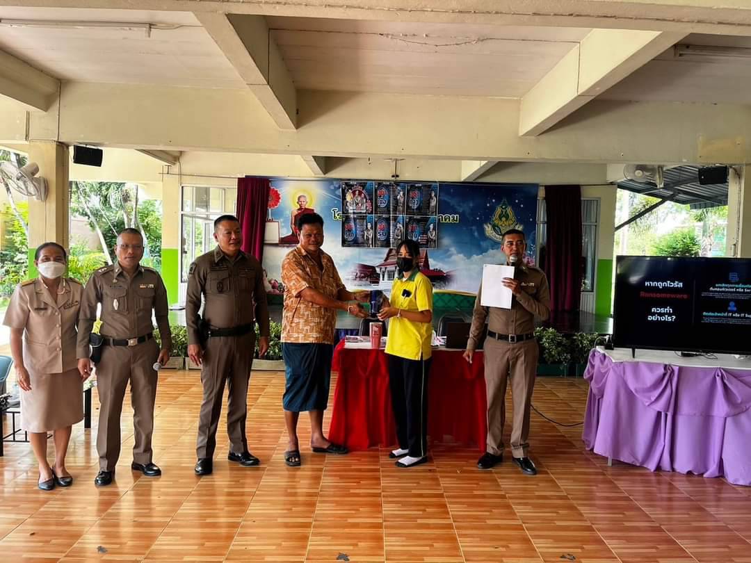 สภ.คลองเขื่อน ภ.จว.ฉะเชิงเทรา วันนี้ (17 ก.ค.2566) เวลา 14.30 น. พ.ต.อ.วุฒินันทน์ จันทร์สว่าง ผกก.สภ.คลองเขื่อน ,พ.ต.ท.ธนทร งามประดิษฐ์ รอง ผกก.ป.สภ.คลองเขื่อน , พ.ต.ต.มณัฐชัย พรหมแสง สวป.ฯ, วิทยากร ครู ข. สภ.คลองเขื่อน พร้อม กต.ตร.สภ.คลองเขื่อน นายมาโนชย์ อุยโต , ผู้อำนวยการ โรงเรียนก้อนแก้วพิทยาคม ร่วมกิจกรรมให้ความรู้ ใน โครงการอบรมให้ความรู้ไซเบอร์วัคซีน”รู้ทันกลโกง” ไม่เชื่อ ไม่รีบ ไม่โอน และทำแบบประเมินทดสอบความรู้ จำนวน 40 ข้อ ณ ห้องประชุม โรงเรียนก้อนแก้วพิทยาคม ต.ก้อนแก้ว อ.คลองเขื่อนจว.ฉะเชิงเทรา โดยมีผู้เข้าอบรม 100 คน