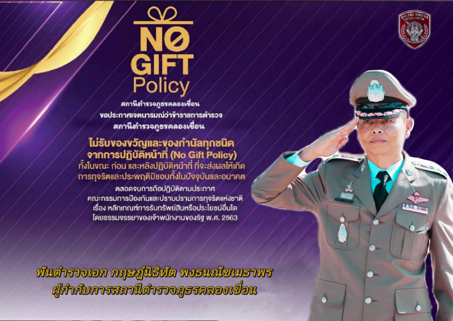 อินโฟกราฟิกนโยบายไม่รับของขวัญและของกำนัลทุกชนิด (No Gift Policy) จากการปฏิบัติหน้าที่